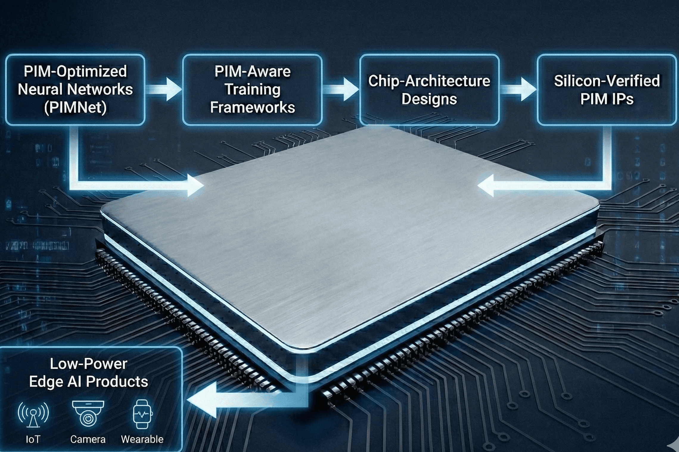 After years of research, PIM is now undergoing a transition into productization. Aizip is at the forefront to enable this transition by offering full-stack PIM system design services to IC companies. The list of services includes silicon-verified PIM IPs, chip-architecture designs, PIM-optimized neural networks (PIMNet), and PIM-aware training frameworks. Aizip further tailors its design services to specific customer needs at each stage of IC product development. Aizip’s full-stack co-design ensures PIM products support desired AI applications while delivering superior energy-efficiency and DNN performance.