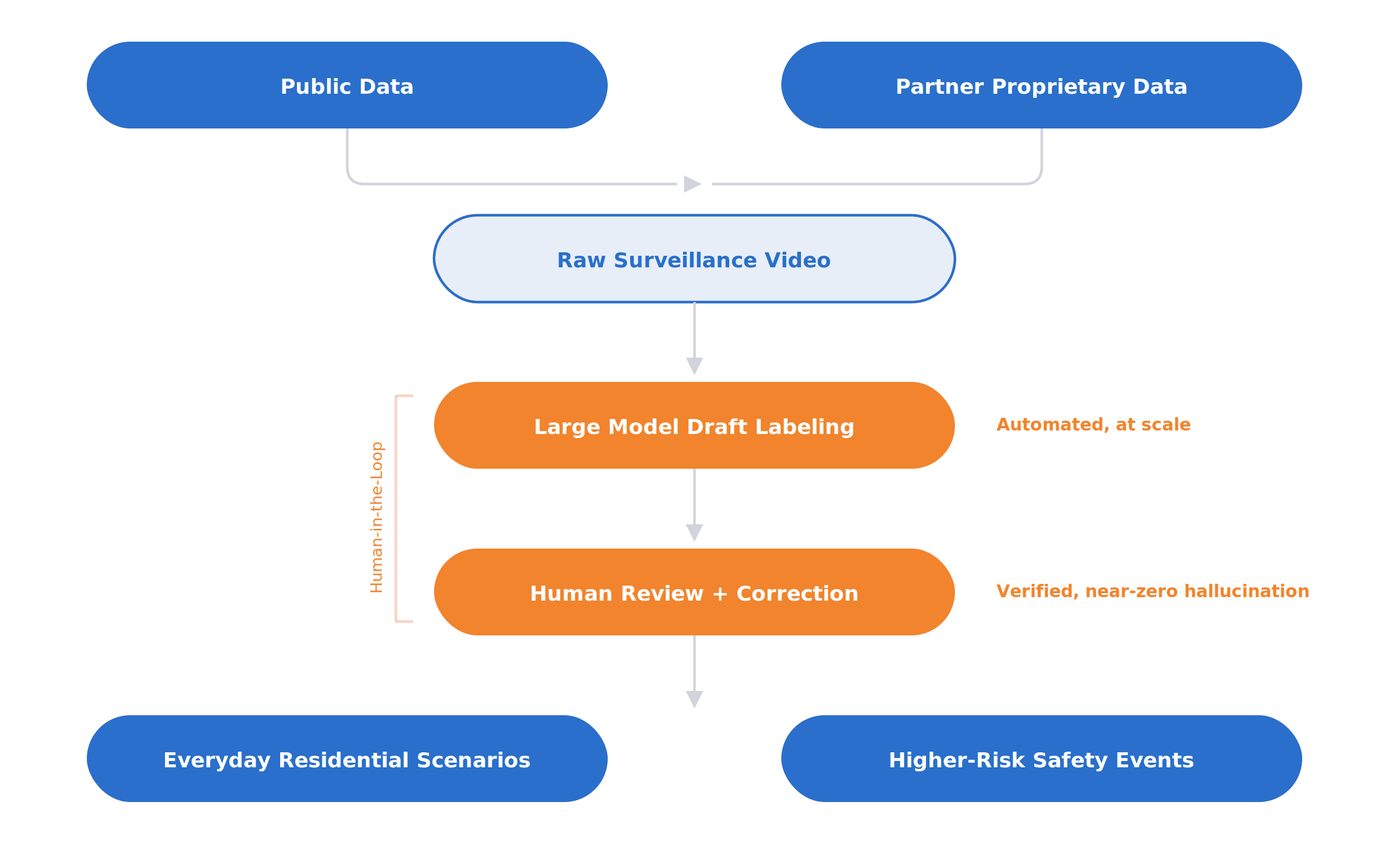 To get as close as possible to a near-zero-hallucination dataset, we built a human-in-the-loop pipeline. Large models first generated draft labels and descriptions, which gave us scale. From there, trained reviewers verified, corrected, and refined those annotations to ensure they matched the footage exactly. This let us combine the efficiency of model-assisted labeling with the precision that security demands.
