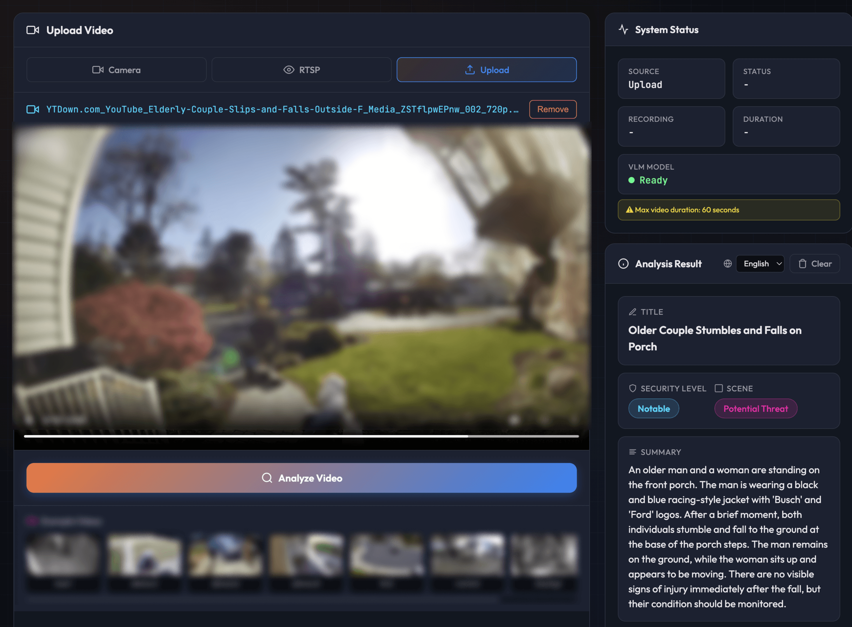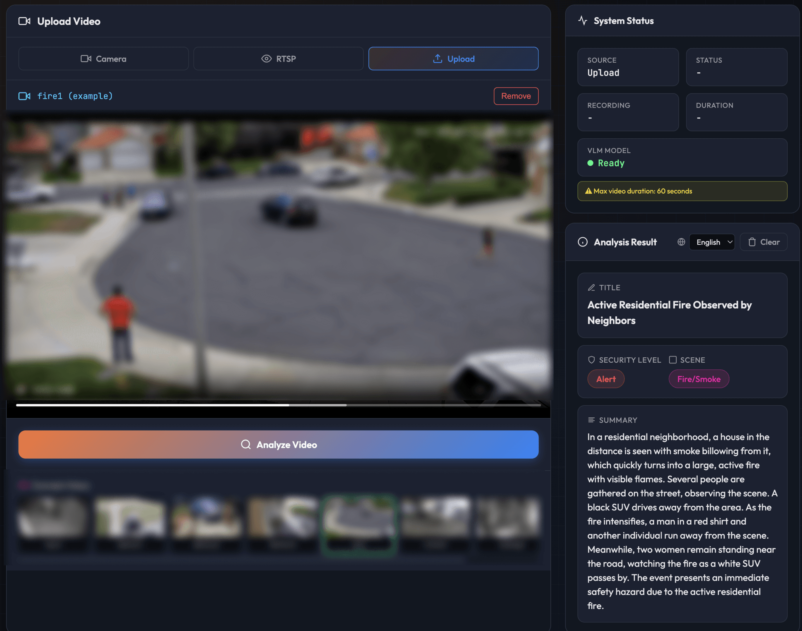 And some scenarios genuinely need 24/7 understanding. Senior care is one clear example: detecting a fall, recognizing distress, or noticing someone hasn't moved in an unusually long time. Continuous fire and smoke monitoring is another: catching early visual signs before a smoke detector triggers, especially in outdoor areas or spaces where detectors aren't present. These cases traditionally required complex heuristic rule systems layered on top of each other. A VLM picks up on context naturally, replacing brittle rules with actual scene understanding.
