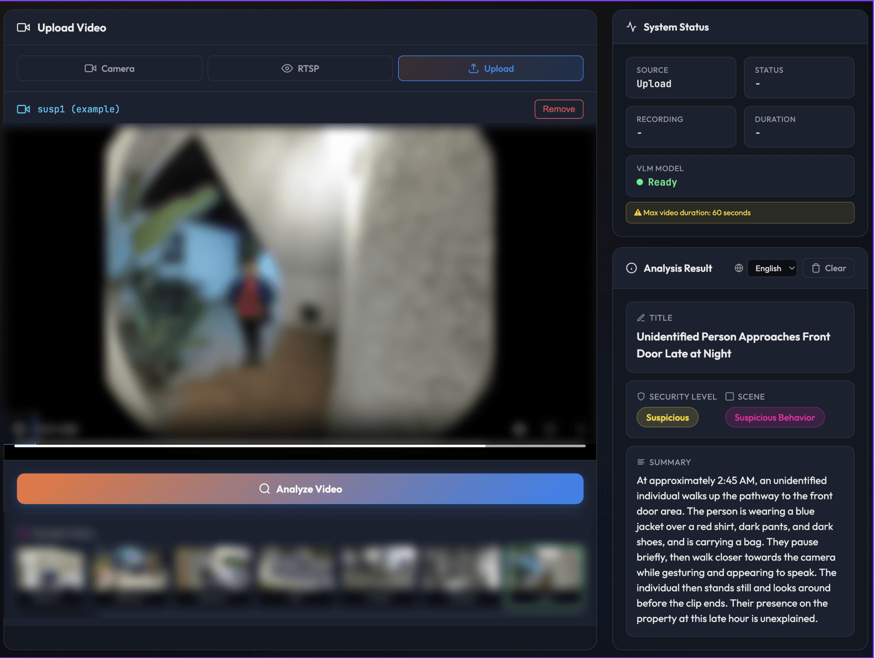 Vision Language Models (VLMs) close that gap. Instead of just detecting objects, a VLM reads and understands what's happening in a scene: who is there, what they're doing, whether the situation is routine or suspicious, and whether it warrants an alert. That shift from detection to understanding is the difference between a system that floods you with notifications and one that only speaks up when something actually matters.